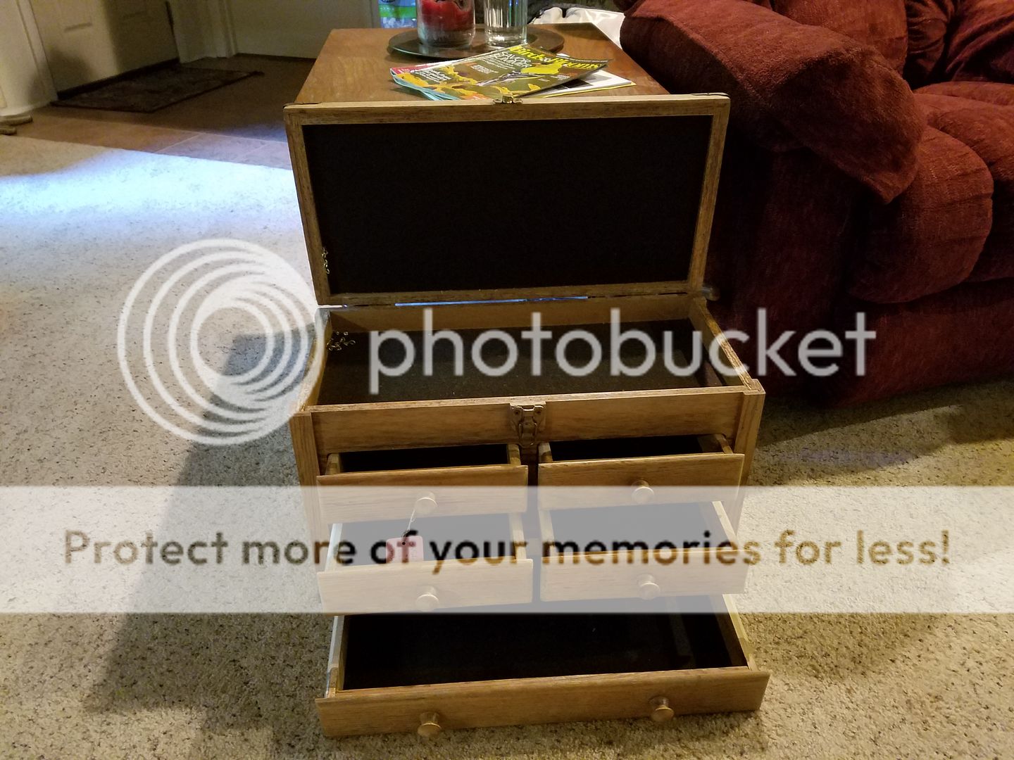 Not sure. It looks like some pieces of it may be particleboard with an oak veneer. But, there is a lot of solid wood in there too. I'm thinking of eventually using it to help with a pattern to build at least one by hand. That's a ways away though.Wow! Todd! That's a neat wee Chest/Drawer set. A great buy ! Oak?