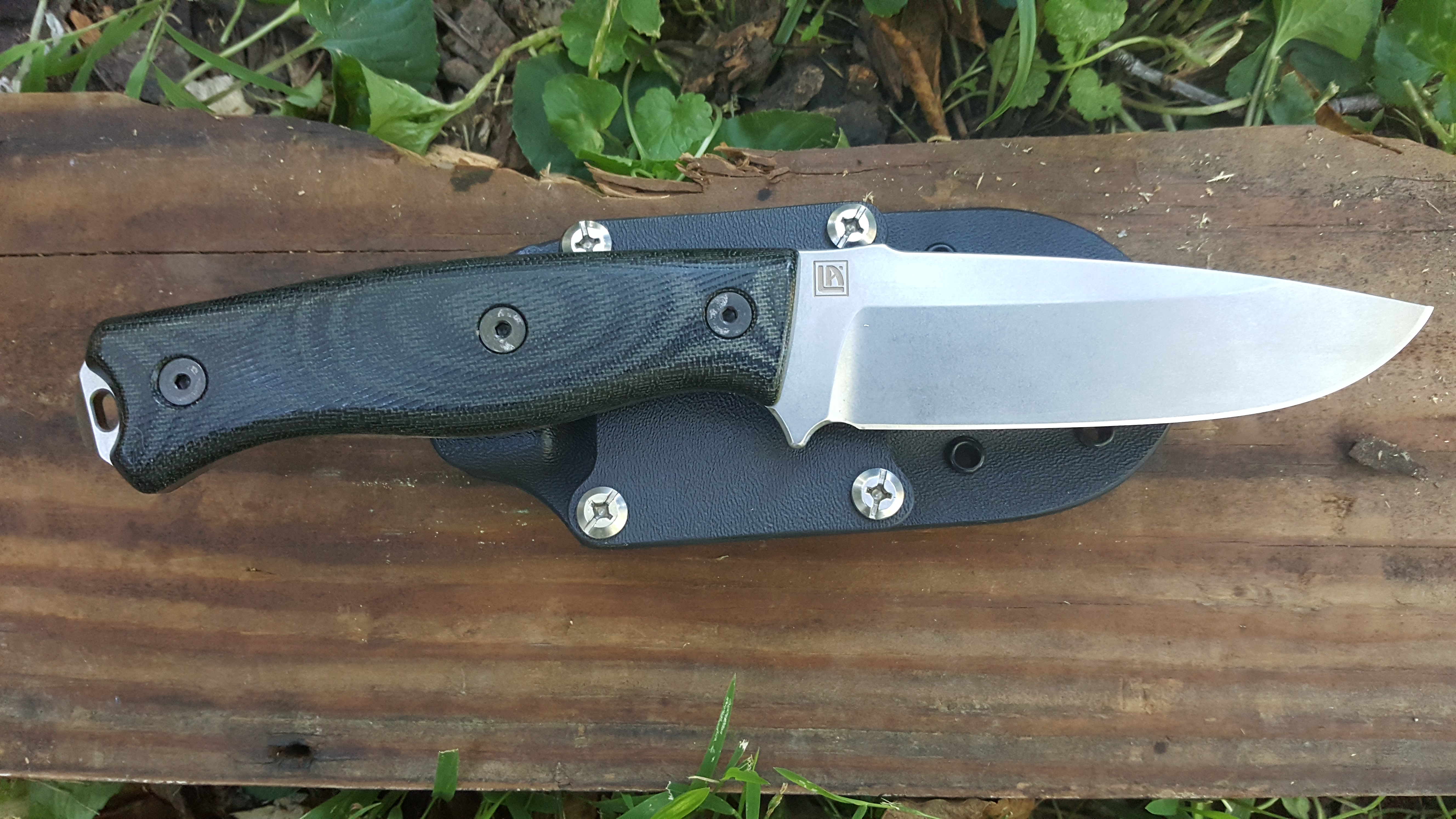 Gravelle F6, this is one wicked knife in Satin green canvas micarta and a 6 inch blade, I have done some light chopping of kindling with it. 225.00 Paypal goods and services only and shipping included to U.S addresses.
