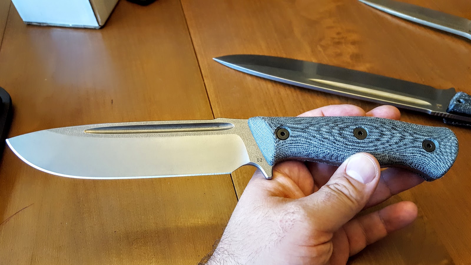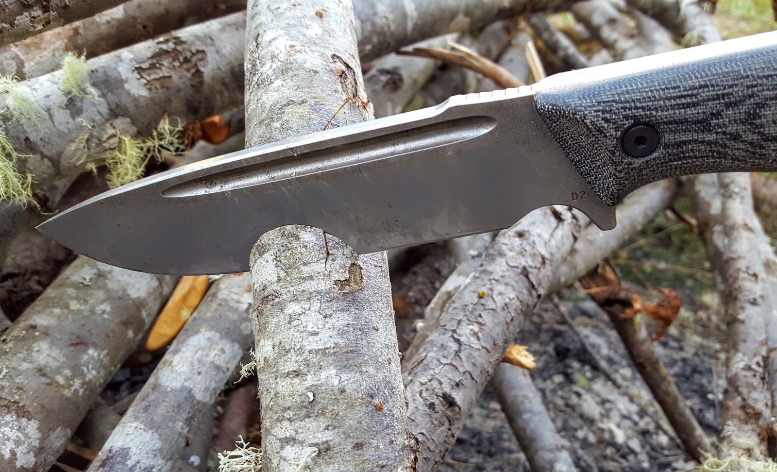 I was fortunate enough to land one of the D2 Prototypes of the HDFK pattern. The D2 (Actually PSF 27, a spray formed version of D2 made by SBSM) prototype version differs from the regular production version in a few ways beyond the steel (the regular version will be in D3V). The blade is "Sterile" which means that it doesn't have the maker or designer marks that will be found on the regular production versions. Additionally, the "bark" was left on the sides of the blade for a less refined looking finish. I tend to prefer a more polished level of finish, but I have to admit the rugged finish looked pretty cool. The only marking on the blade was a simple D2 to let you know what steel this was made with. I only had two weeks to review this knife before I had to send it on to its permanent owner, but I made sure to give it a thorough workout.