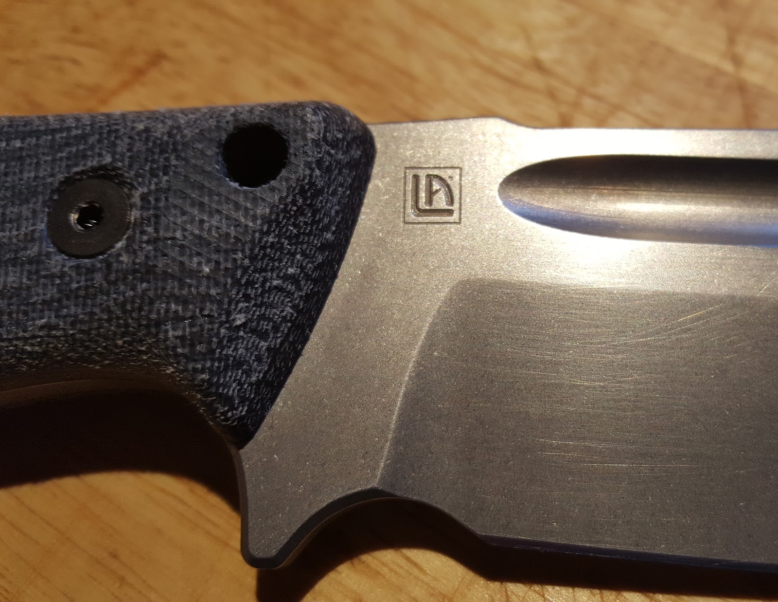 The handle of the LC is made out of TeroTuf. TeroTuf is a composite material somewhat similar to G10 or Micarta. All three materials are made out of layered textiles compressed with resin. The difference in TeroTuf is that both the textile and the resin are polyester, as opposed to phenolic resins with either fiberglass (G10) or a variety of materials (paper, linen, canvas) for micarta. There are a few advantages to TeroTuf: For the knife maker, TeroTuf produces less toxic gases during machining. But from a user's perspective the biggest advantage would be lateral toughness (Here is a good video demonstration by HelmGrind) and enhanced grippyness. Since G10 and Micarta already have outstanding lateral toughness and dimensional stability the only real edge from my perspective is grip. I found the TeroTuf to be a little grippier when dry than unfinished micarta. I prefer canvas micarta for the most knife applications, but I really think the TeroTuf is an excellent choice for a chopper.