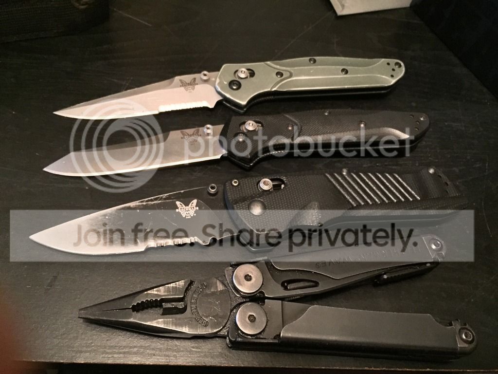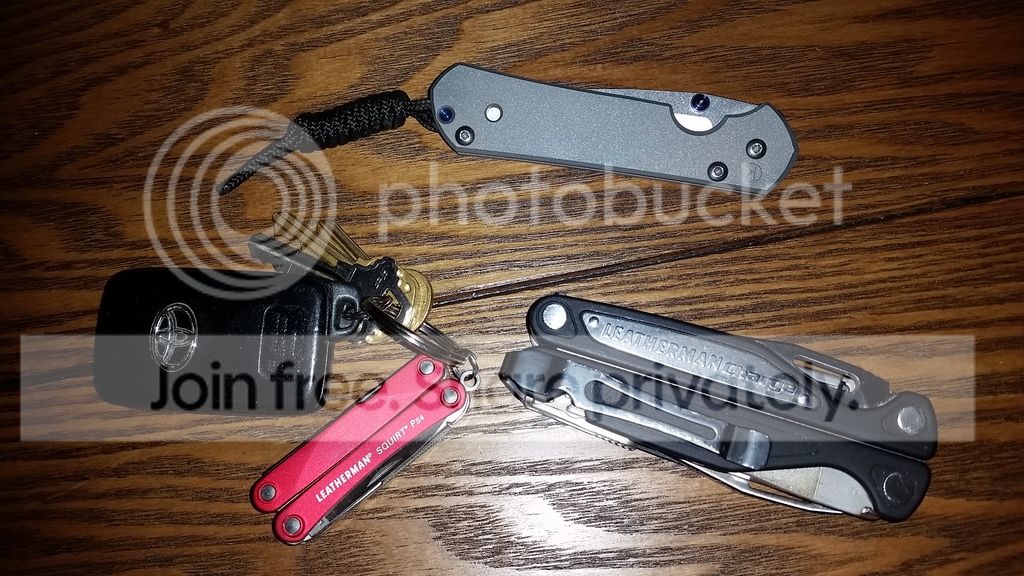 Then a 3" or so locking folder of some kind, usually a small plain Jane Sebenza 21 is in my right front pocket in a slip sheath I made.