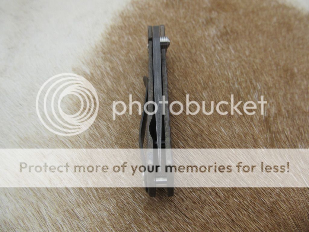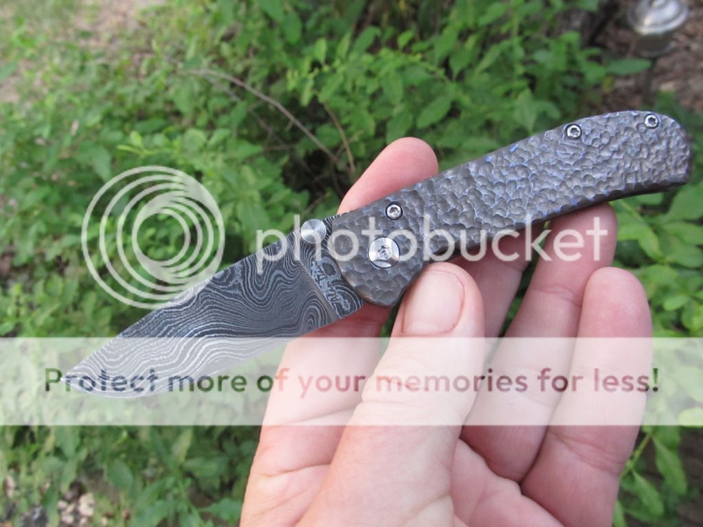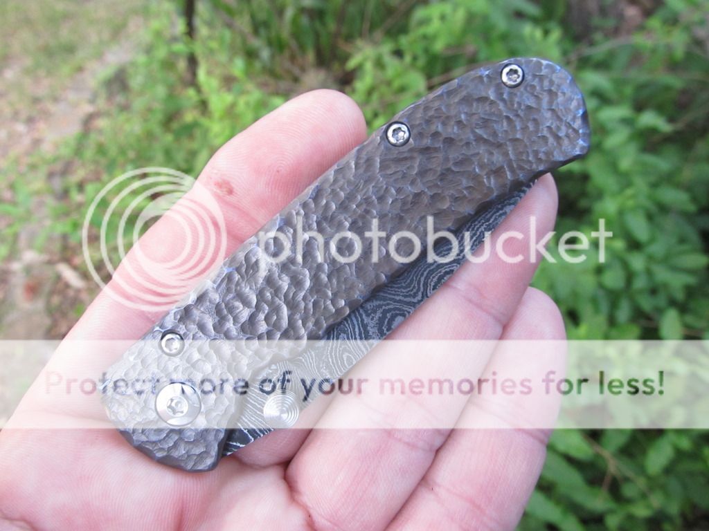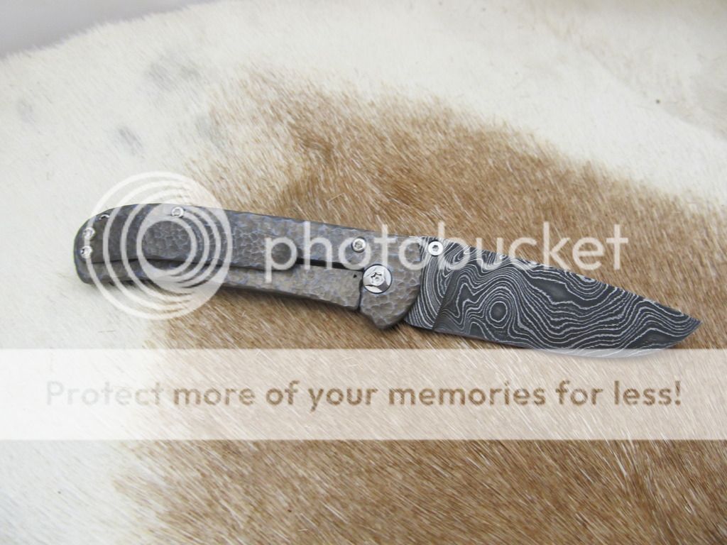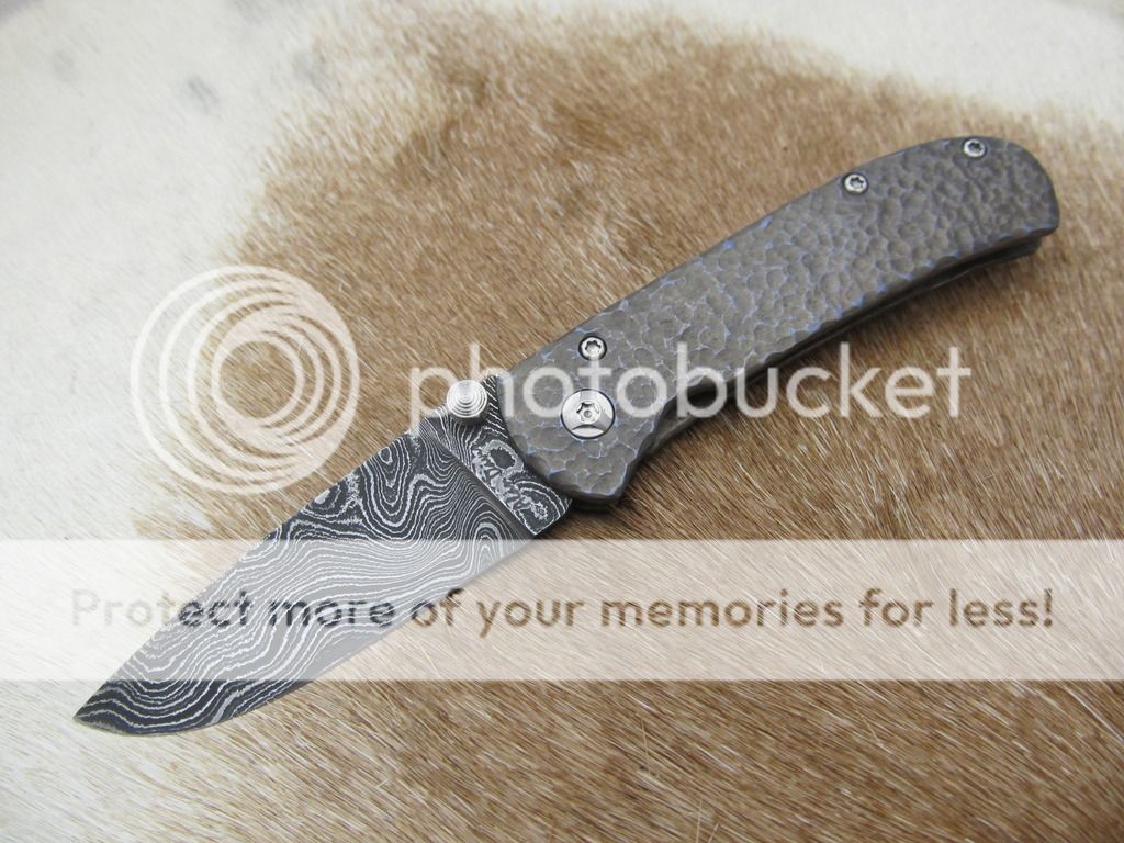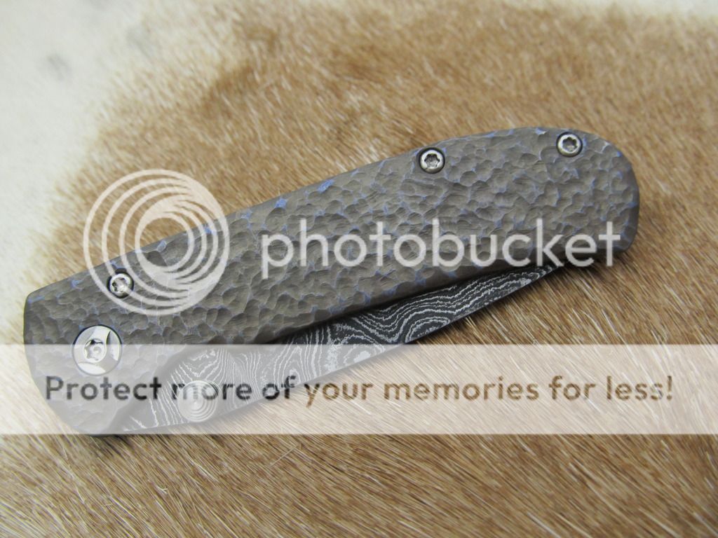 frame & clip hand carved, heat anodized titanium with blue highlights-