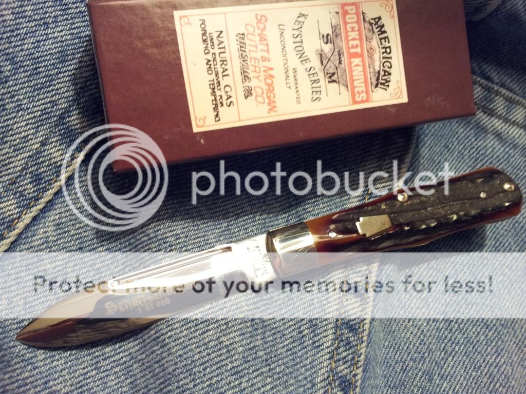 This Schatt & Morgan medium coke bottle is limited to 400 pieces. Its brand new in box. Has stag handles. Pull is about a 6.5 with very smooth hard snap. 3.5" closed......$old