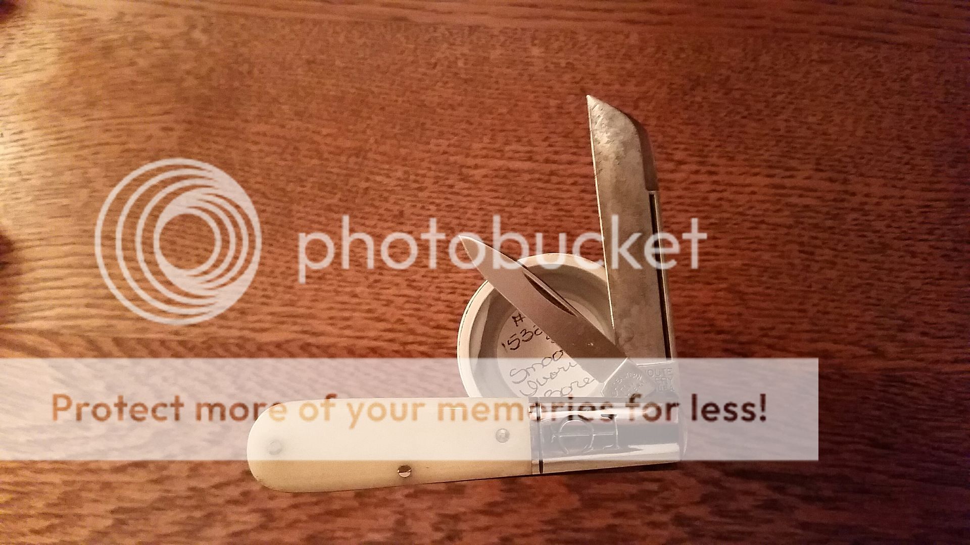 Case/Bose coffin jack in 154cm and ebony. Nothing really bad to say about this knife. Very nice pull and both blades are snappy. The main is slightly off center but does not rub. I have carried it lightly in a leather slip case and it has never been sharpened. $270 shipped and insured anywhere in the U.S.