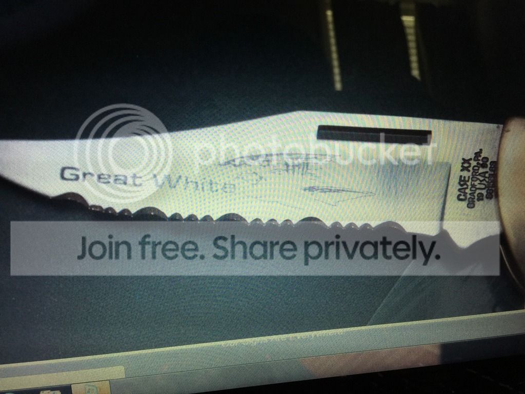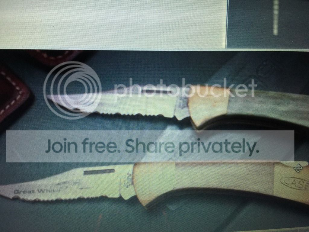 A friend sent me an email of these two knives that belonged to his. Here are the pictures. i tried to take them with my phone on the cpu so they are a bit blurry. I'm a pretty good researcher but i can Not find anything on these. they also come with two leather like pouches. If someone could help me find out teh value for him that would be great. They say case xx great white