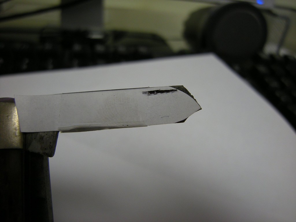 More photos can be seen in the original thread, but this is what I started with. I searched the internets for a photo of a Case pen blade, printed it out and cut myself a template.