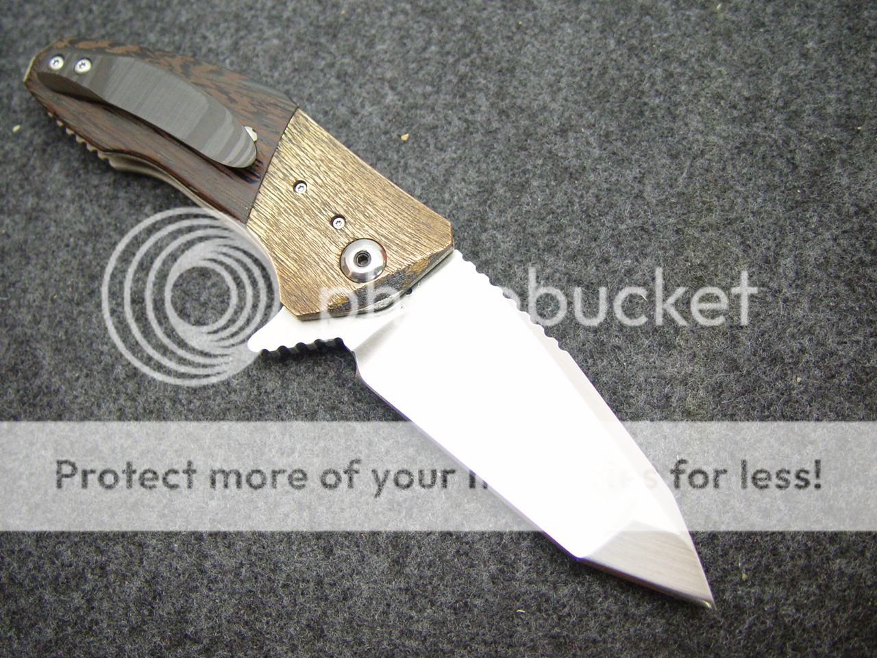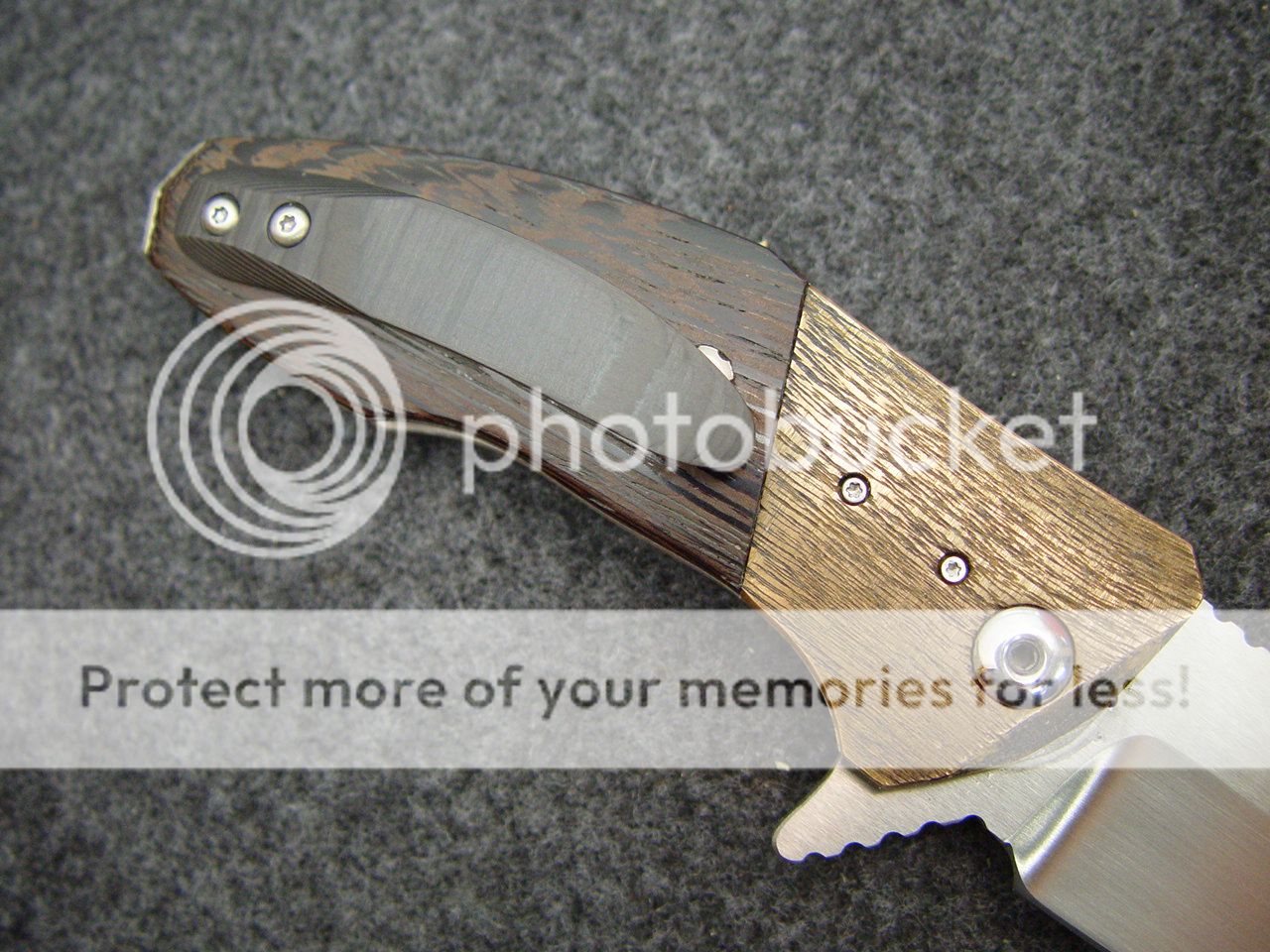 Elishewitz Mini Saboteur flipper, 3.5" blade, 7.75" overall, Wenge wood and Bronze bolsters, $900