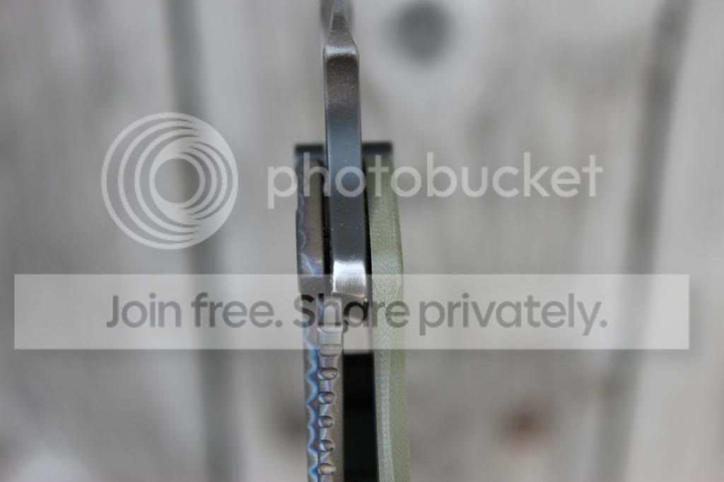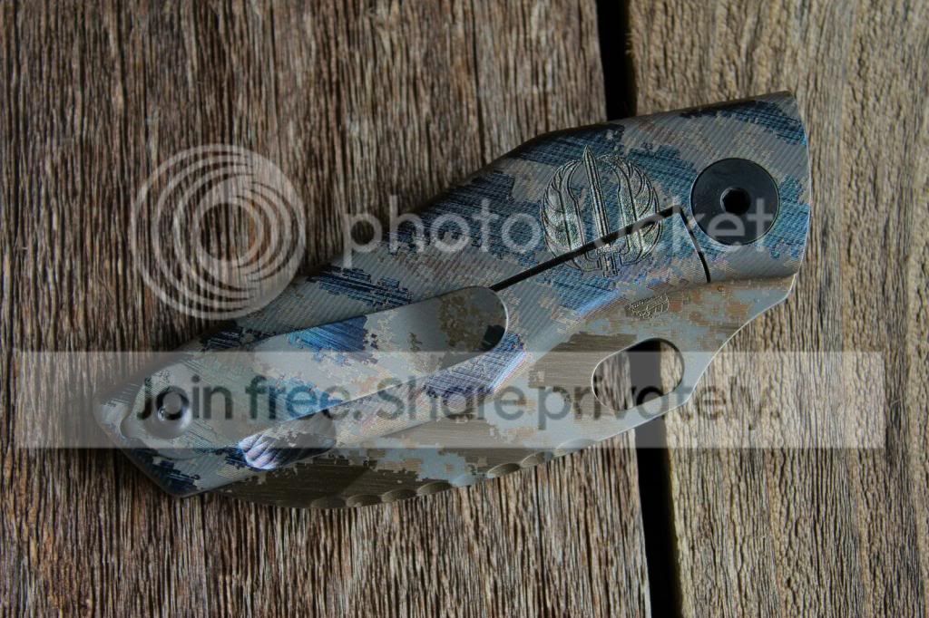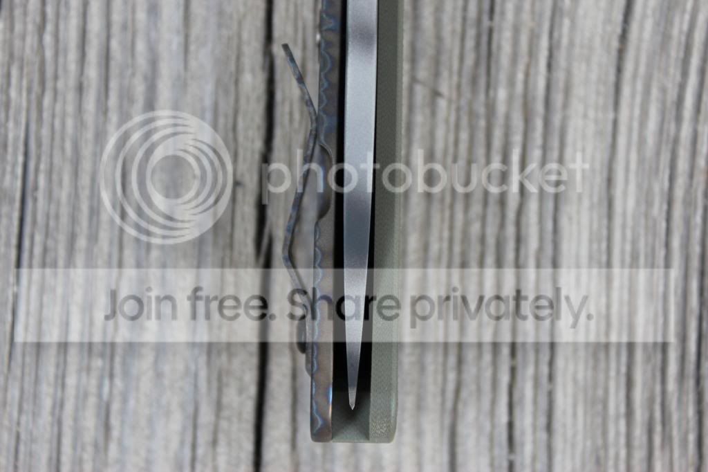 3) Strider SMF - Lego Ranger Green Handle, flamed (beautiful!) lockside. Tiger Stripe Blade. S30V steel. This little guy I bought as new, and it never made it into the rotation. Still looks pristine. There is a very light mark on the blade that was there when I got it. Super smooth, centered, and solid lockup, no stick on lockbar. Really a superb specimen. Asking well under retail, at $OLD!!!!.