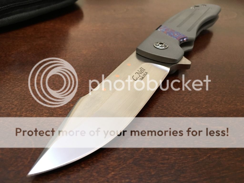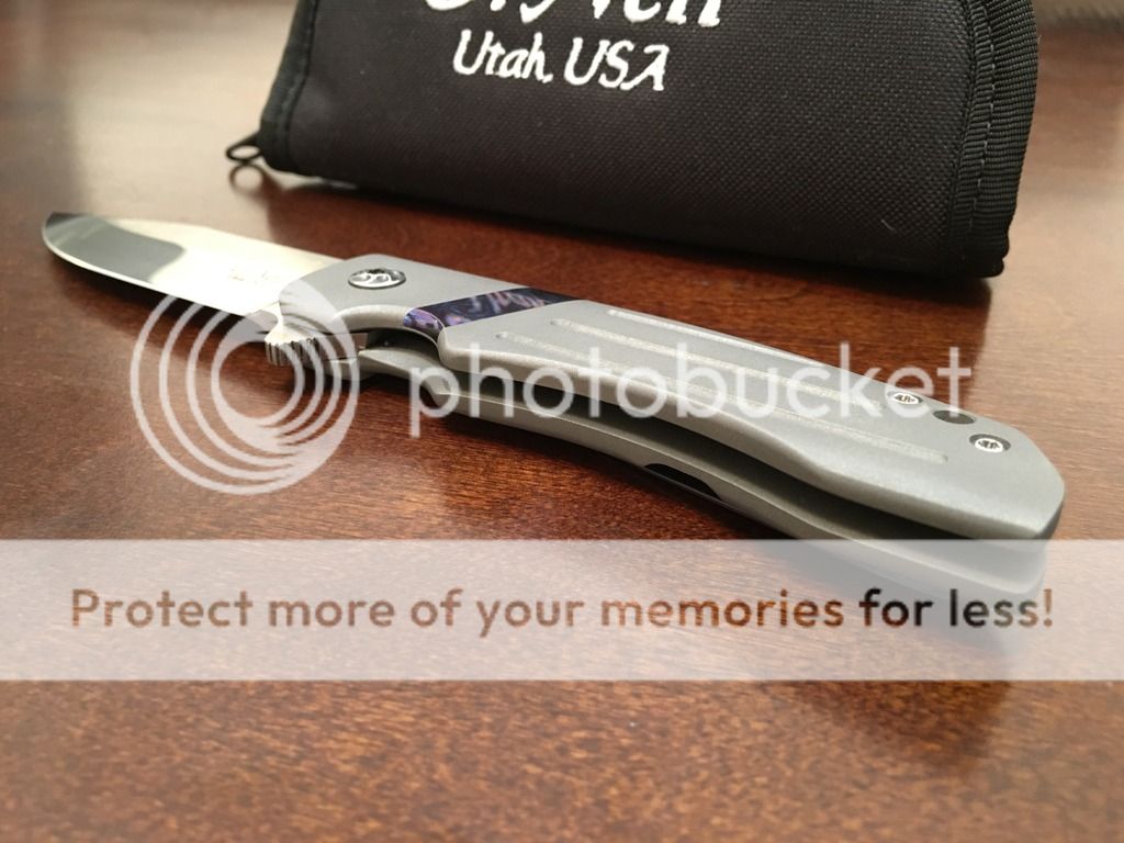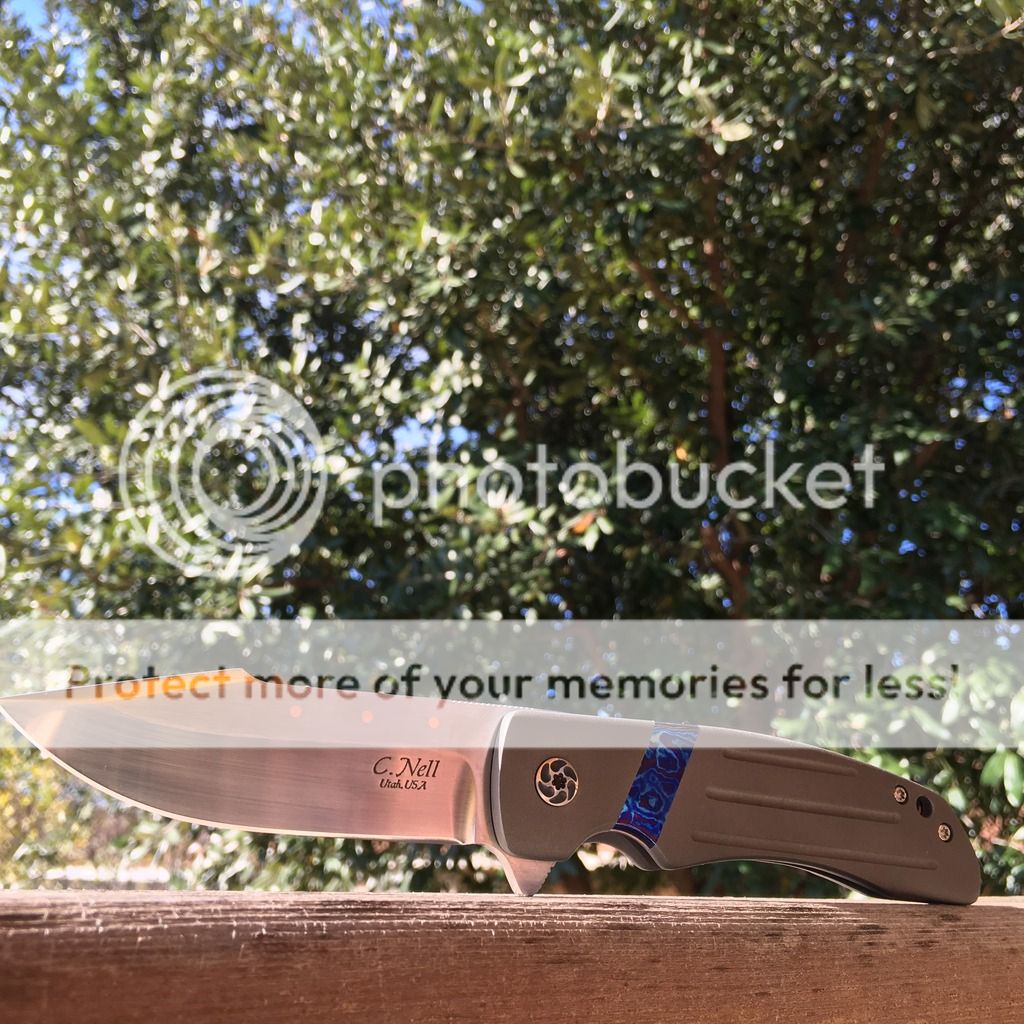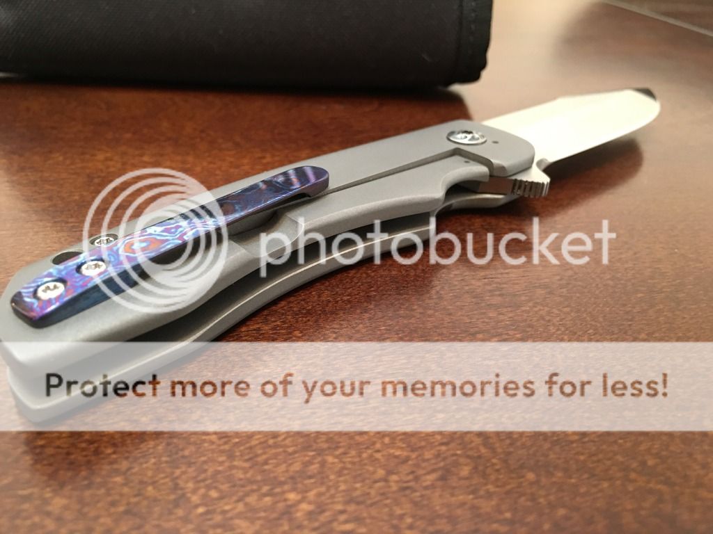 A beautiful Chad Nell designed ESG Flipper with timasucus accents that include clip, floating backspacer, and inlay. Flips smoothly and locks up at what looks like 20%. This EGS Flipper is in like new condition and usually sells for $800 by the maker.