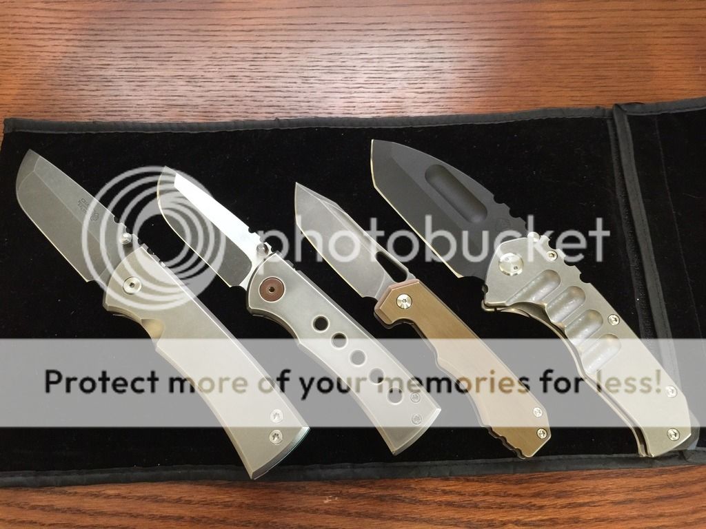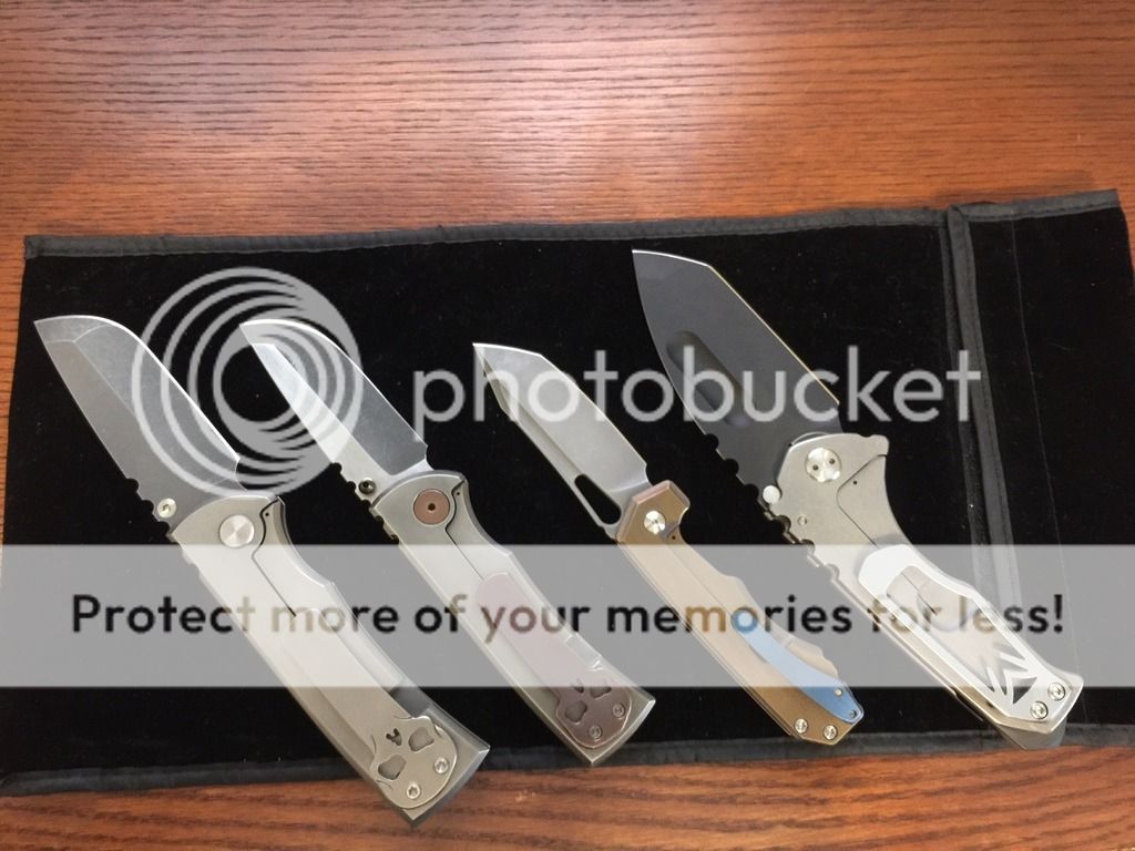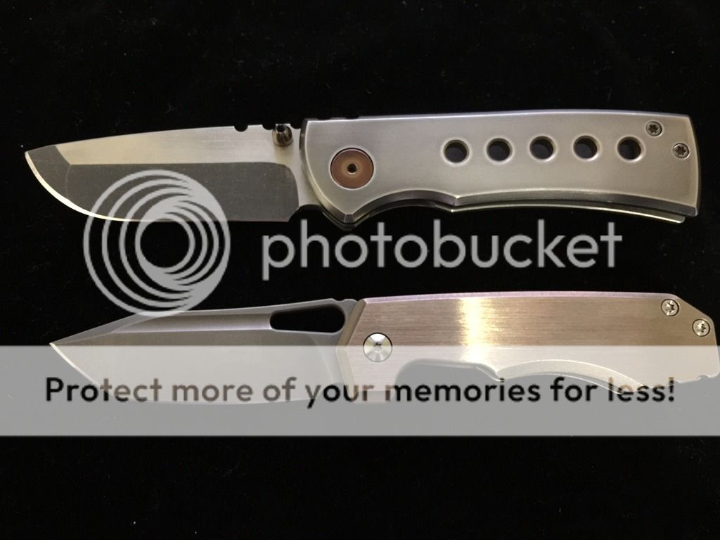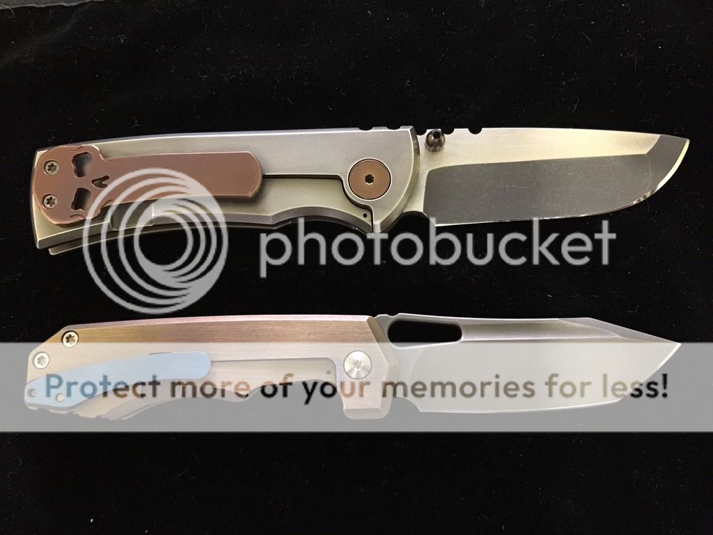 The below two photos are to show scale only. The full custom Chaves Redención (left) and Medford Praetorian Ti (right) are not for sale here.