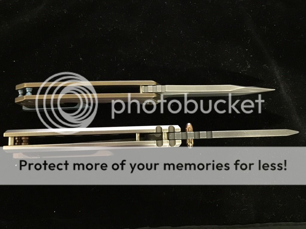 - Chaves / Stout Megalodon 225. This one is in new condition. Nice bronze anodizing with blue spacers and clip. This is a $675 knife that I'm letting go for SOLD