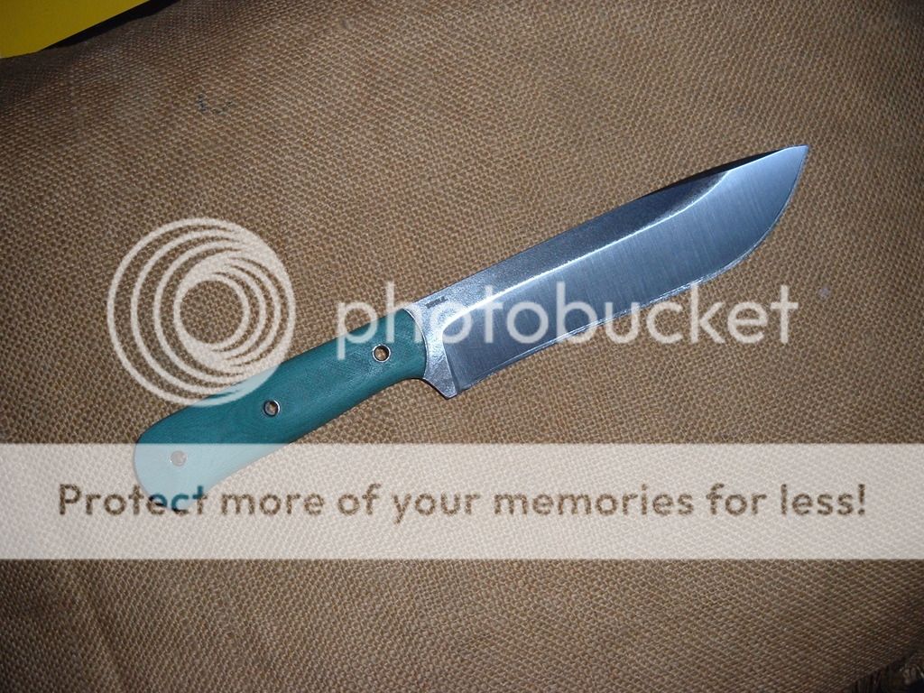This is a little less finished than usual and does not come with a sheath. Scales are green Tero tuf and are attached with epoxy and three stainless flared tube fasteners. Steel is 1/4in thick 5160 with a differential heat treat. Overall it is a hair under 12inches. The blade is 7inches tip to handle. I left the mill scale on the blade flats. Price is $140***SOLD*** shipped in the US.