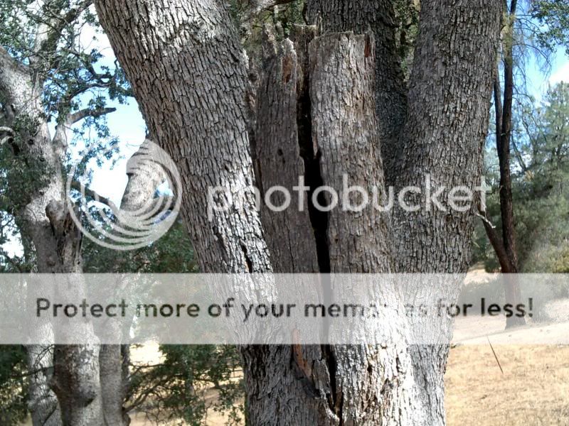 A fire came through this area some time ago, there's a few old oaks that have old burn damage:
