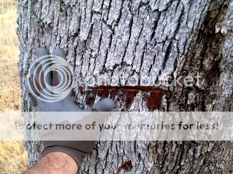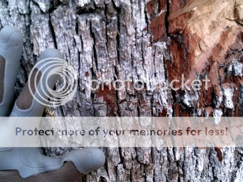 Glad I put the brass beads on my D guard. I got a little over zealous (as usual), this is the mark from the bead bashing the tree. Didn't hurt my knuckles though: