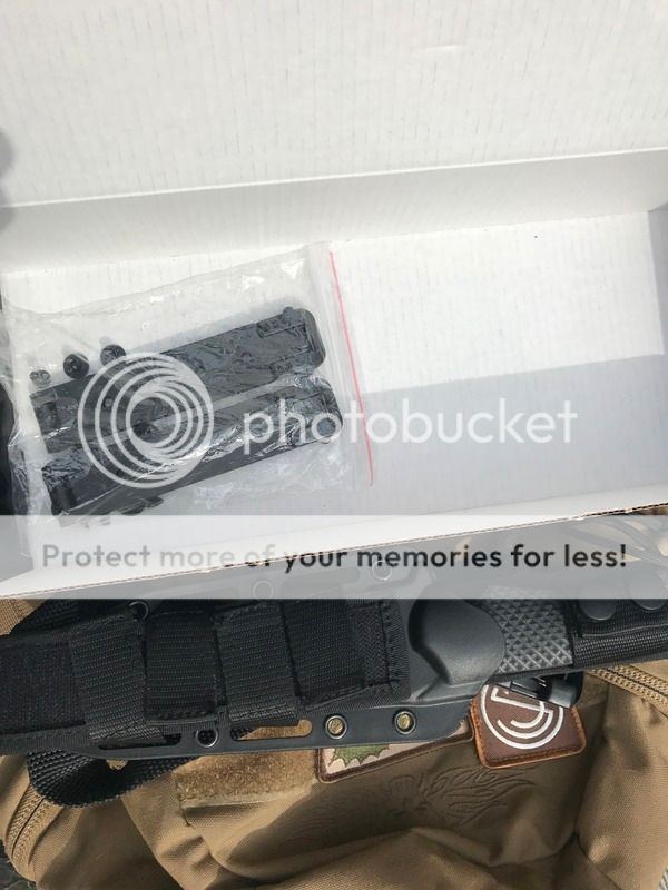 2) Combative Edge Salus. 5.875" blade, N690Co steel. Comes with sheath and molle straps. Very cool knife, light weight.