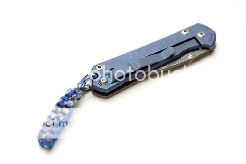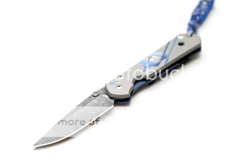 WTS: BRAND NEW IN BOX Chris Reeve Knives Small Sebenza 21 Teardrop Damascus blade with Unique Graphic with lanyard (Blue anodized)