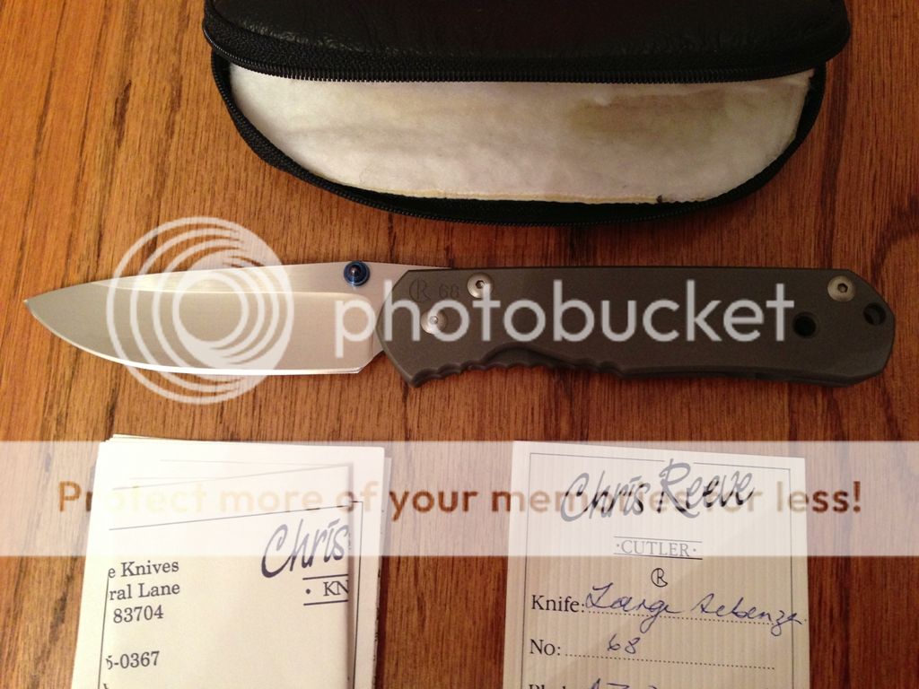 For Sale Chris Reeve Large Sebenza #68. This knife is in mint condition. I have all the paper work for it, but the box is missing. It has been stored in a padded case, that comes with the knife. Sold shipped in the CONUS with no PayPal fees. The first "I'll take it" gets it. If you have any questions, send me a pm or an email.