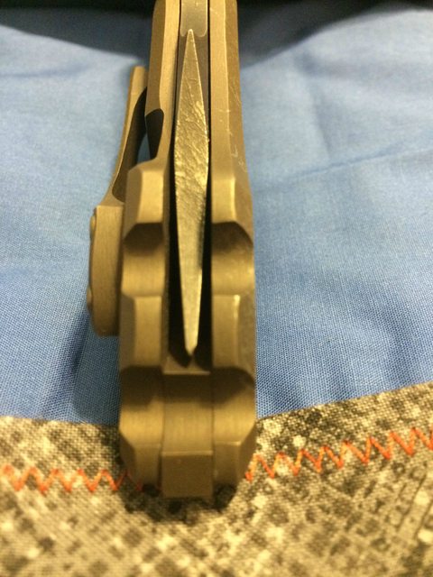 Condition: carried a few times, has cut a few envelopes but not much else. 2 slight marks on the lock side, mostly hidden by splatter pattern except in strong light (see photos). I have not sharpened it.