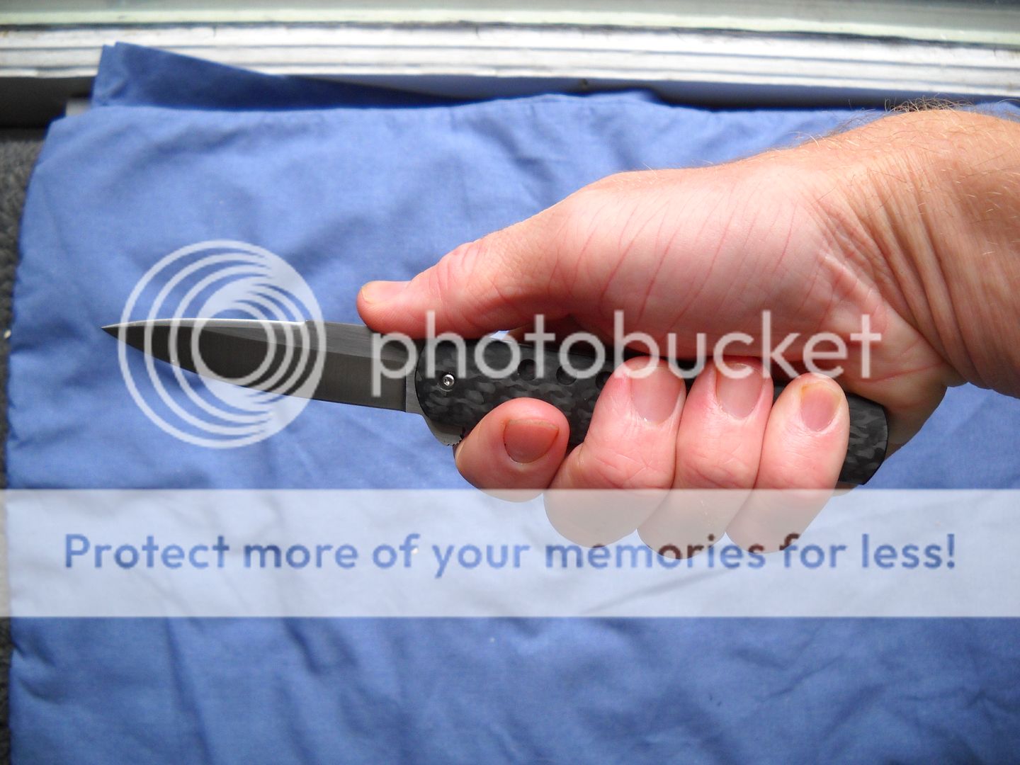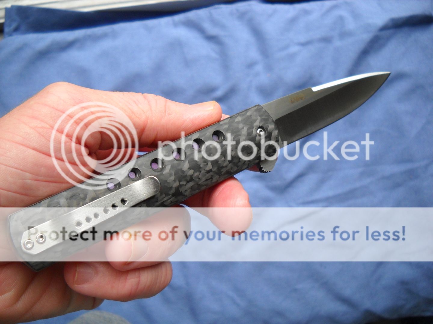 Up last is a very nice flipper made by Chuck Gedraitis, features very nice CF scales with thick liners anodized blue/purple.