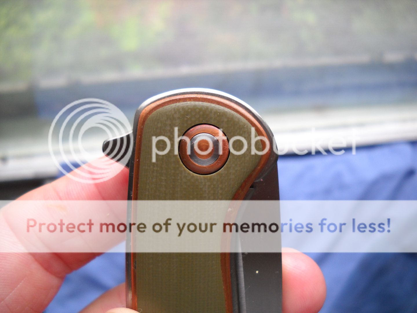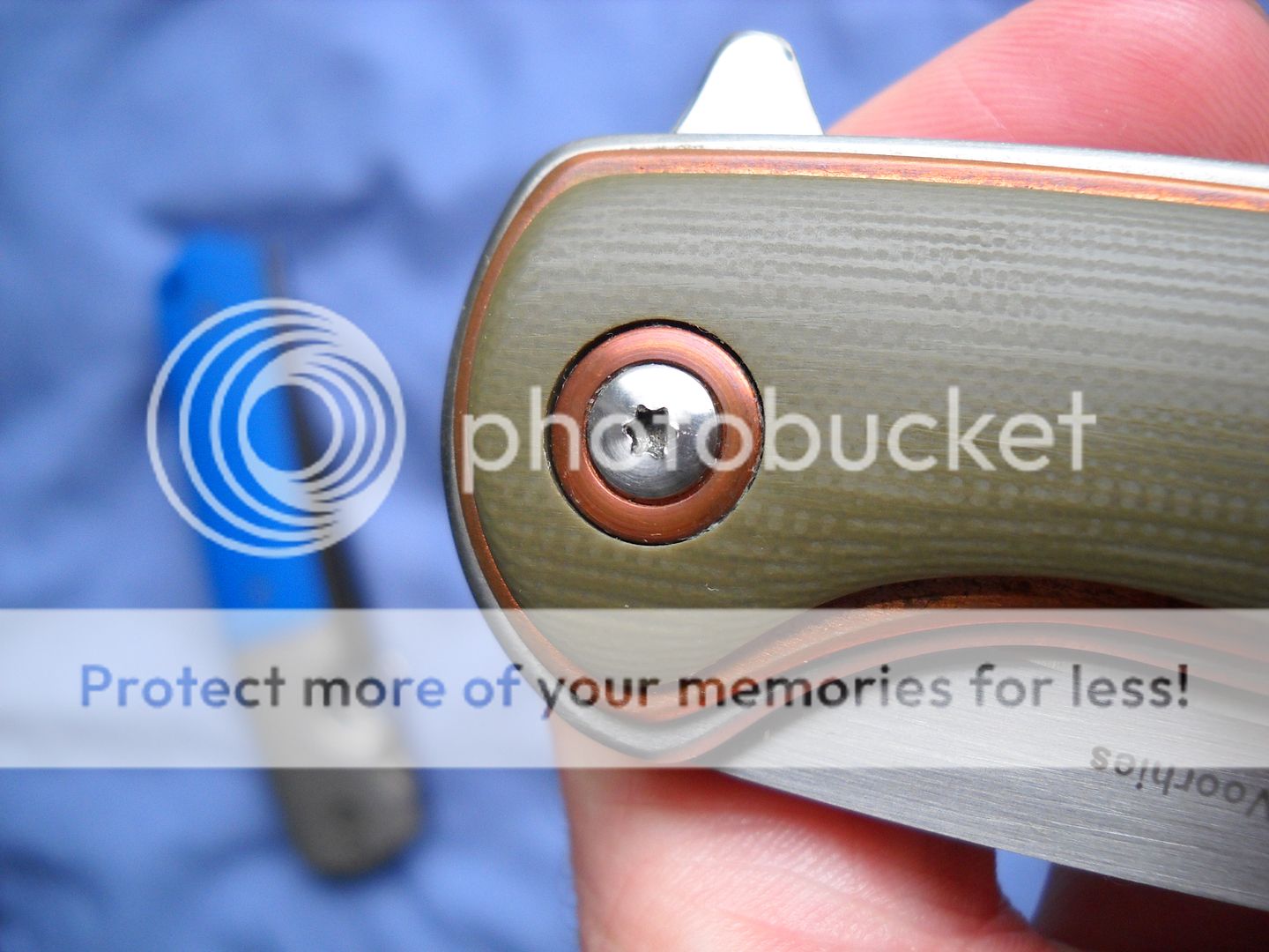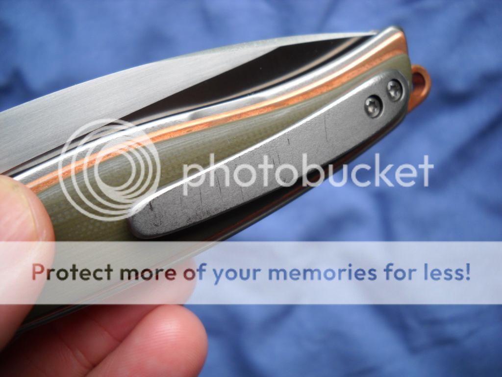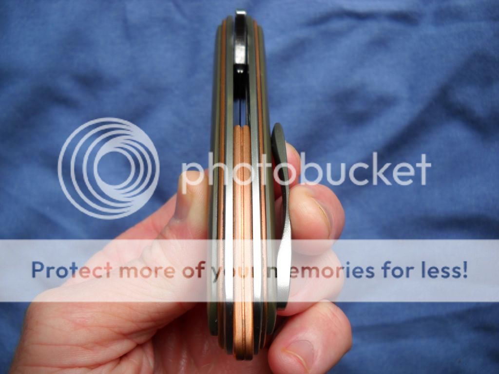 Up for sale is my M9 liner lock with OD G10 scales, copper liner, copper pivot collar, copper backspacer.