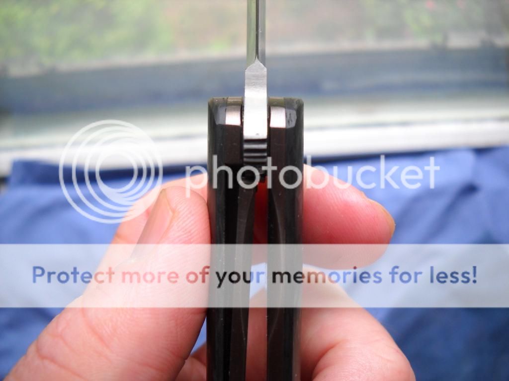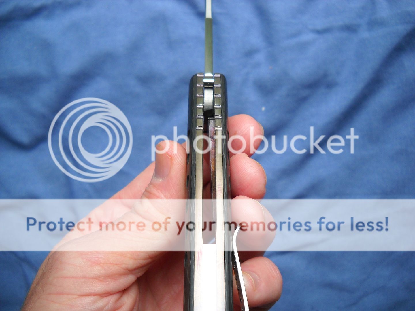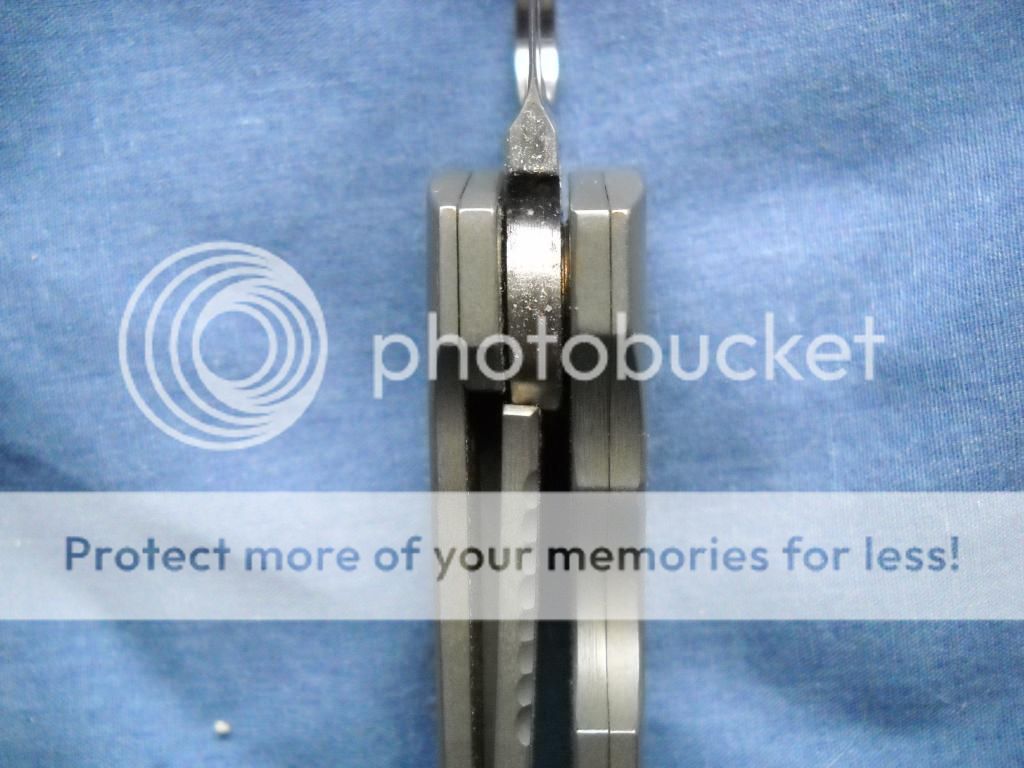 Blade is a spearpoint dagger style, only sharp on one side with a nice swedge. Ti backspacer.