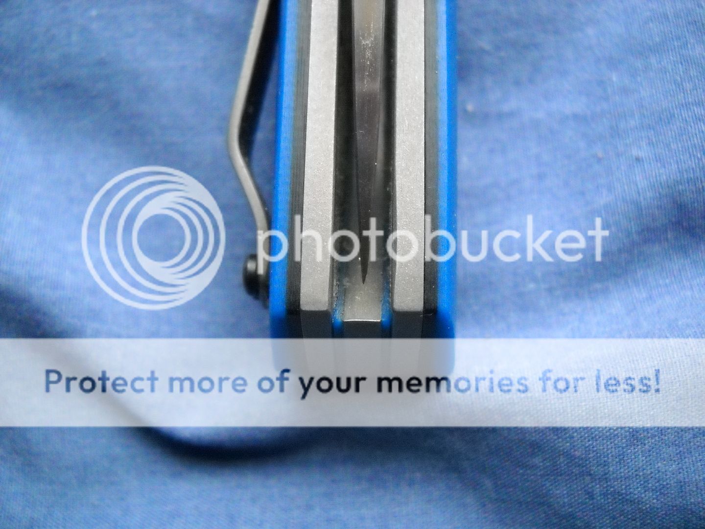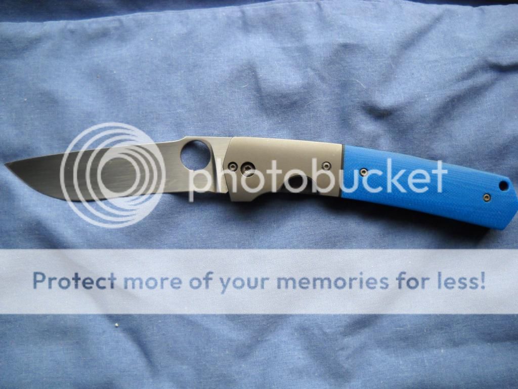 Features lightly blasted Ti bolsters, liners, clip and spacer. Blue G10 scales with black G10 liners underneath and between bolster for a very nice look
