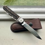 2) LNIB (Box is a bit worn) Mikov 232-XH-4/KP with faux stag camping knife. Main blade locks. Super value. $43
