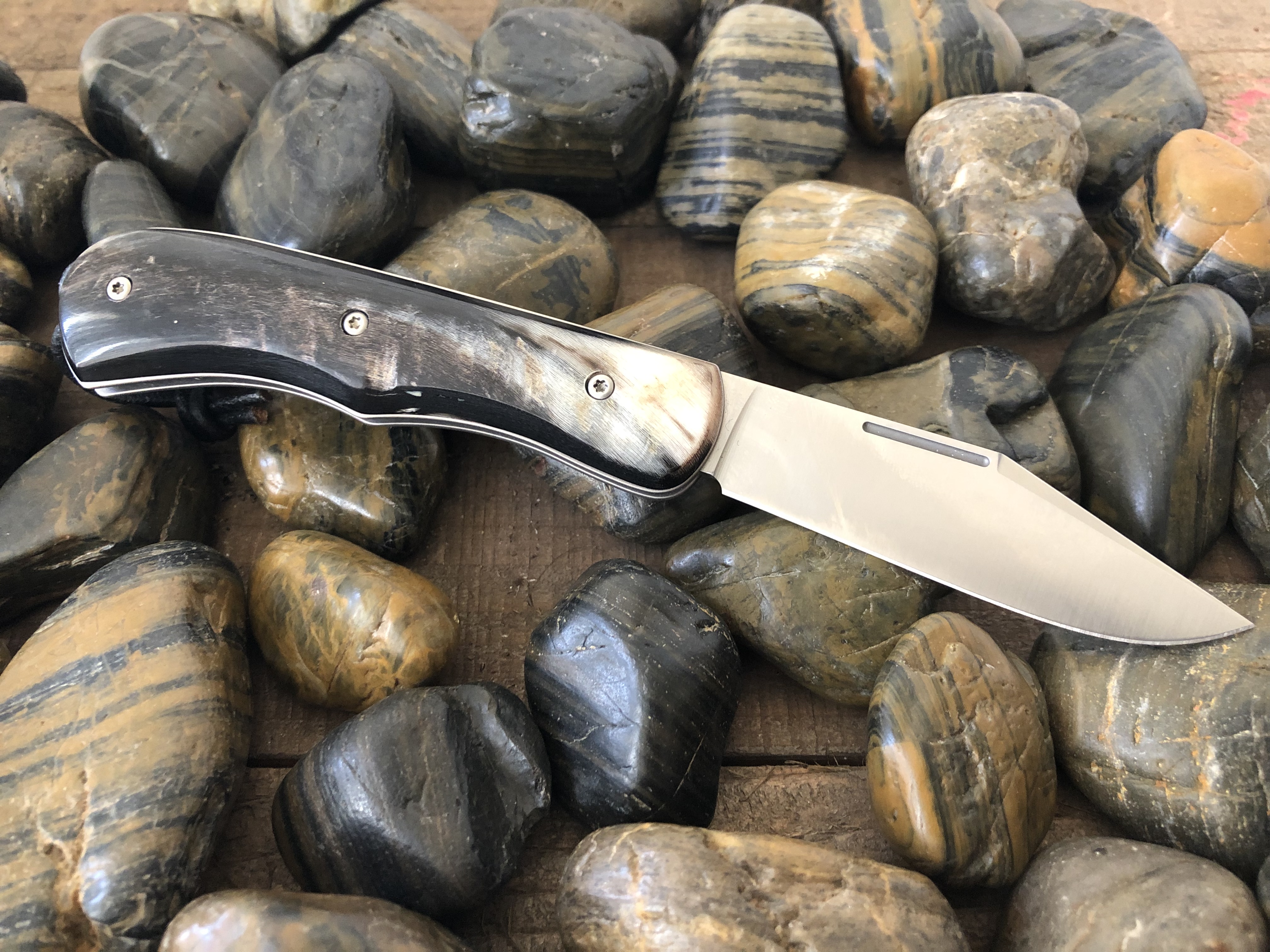 I get the hype now. Really like this knife: great size, nice and thin behind the edge, solid half stop, good fit and finish with no sharp corners, and the handles? Probably my most matched set on both sides for any horn.