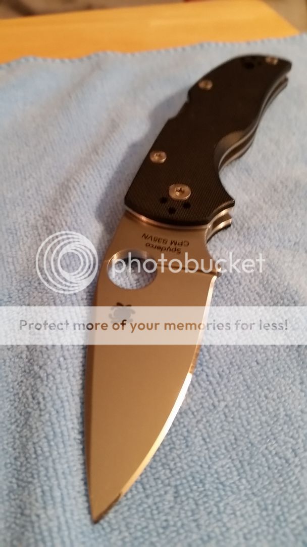 1) Spyderco Native 5, G-10 with CPM s35vn blade that has been taken to a mirror polish on my Edge Pro and stropped on leather with .5 micron diamond spray...the sharpening will not disappoint! It has been carried a few times. The handle shows no wear, and the blade is perfect except for very minor micro scratches at the tip on one side....see last pic. It took me forever to get light to hit it just right to capture in pic, as did the Gratch scratches. Comes with box and paperwork.