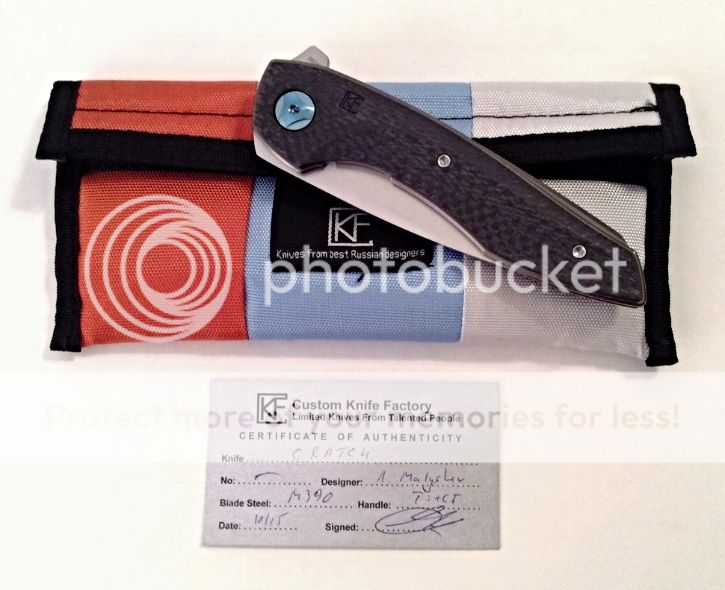 2. Custom Knife Factory Gratch. New in box. Beautiful carbon fiber handles. Outstanding fit and finish. Never used, sharpened, carried or messed with. Gorgeous folder in flawless condition. M390 blade steel with beautiful hand rubbed satin finish. Perfect rock solid lockup. Very smooth flipper. Perfect blade centering. Comes with CKF bag, CKF red logo cleaning cloth and birth-card dated 10/15. $315 TYD. SOLD to MaxFactor