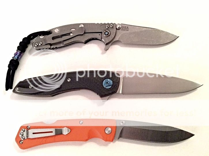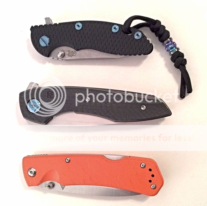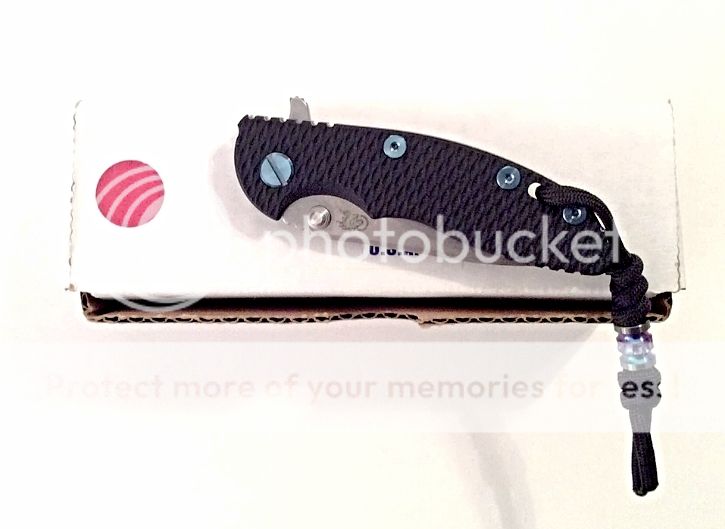 1. Hinderer XM-18 3 inch slicer grind. Black G-10 scales, blue anodized hardware and zirconium bead on lanyard. In like new condition. Never used or sharpened. Carried a couple of times. Rock solid lockup, early lockup and smooth flipper. Perfect decent. Perfect blade centering. Stonewashed S35VN blade shows no evidence of use. Good factory grind never touched up or even stropped. Comes with box and peanuts. $385.00 TYD SOLD to Nfd538