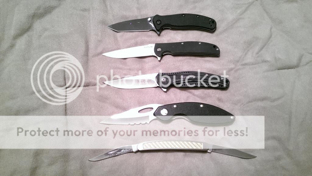 Looking to clear out some lower priced knives that I have not carried in a while and figured that they should move along to someone that will use them. All have been used and sharpened. They are a kershaw black zing tanto, kershaw chill, crkt ripple, buck odyssee, and a camillus yello-jaket. Looking to sell these as a group for $60 shipped to the lower 48. Paypal fees included.