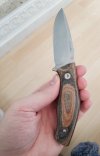 Seeing multiple knives. Makes me kick myself for not ordering two. Great looking knives. Thanks for this post. Was on the verge of sending email to ask when I was getting it. But now I don't have to do that. Love the different micarta colors. Make each knife look very different.My order (post #27) arrived on Tuesday. Included Magnacut and a swedge. So these are getting fulfilled now, they're awesome folks!