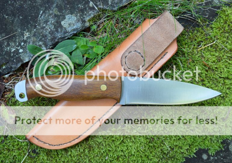 The steel is O1, the scales are of greenheart with brass pins. Greenheart is a really silky tight grained wood that is very hard and durable - used here on the coast for - among other things - to build ship ways. Makes for an extremely durable knife.
