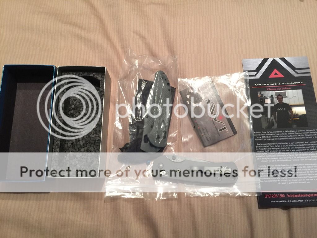 case for the most of it. It is missing an omega spring on the side with the butterfly on it, it broke as I was regularly just flipping it open and closing it, I guess it came weak from the factory, other than that it is in new condition. The G10 scales middle screws that go into the axis lock are stripped however, so if you wanted to put them back on you might need new screws.