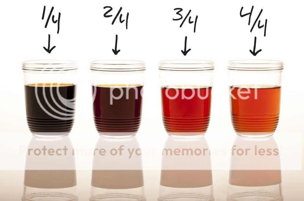 In order to not completely overwhelm my taste buds, I tasted the least extracted stage first. That's the one on the right shown in the picture above marked 4/4. This sample was the 4th quarter ( and last) stage of the brew. I then sampled the third stage of the brew and so on...