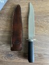 This 3V Laredo Bowie comes with a Sam Browne stud style leather sheath from Harry Savage. It is unused. I got the leather sheath after hearing that the secure ex sheaths scratch the blades. This knife includes the box and secure ex sheath.