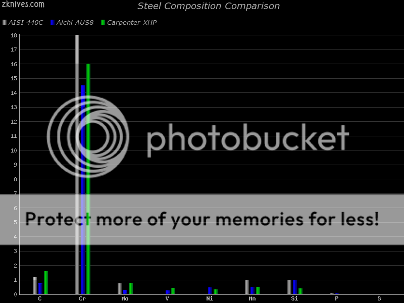 Where's the scientific evidence that any of this is true? I've seen only one knife steel test in the mid-late '90s that used a truly scientific methodology: Every blade was made specifically for the test, controlling edge geometry, cut pressure and edge surface grit finish: 440C, an AUS-8 near-equivalent (as far as I know), blew away in raw edge-holding every steel of the time, and this in a wide variety of materials... This superiority including to greater or lesser extent D-2, ATS-34, 154 CM and the two earliest cutlery-used CPM steels. A particularly wide margin was found on manilla rope between 440C and the second best steel...