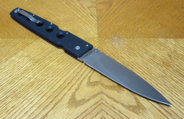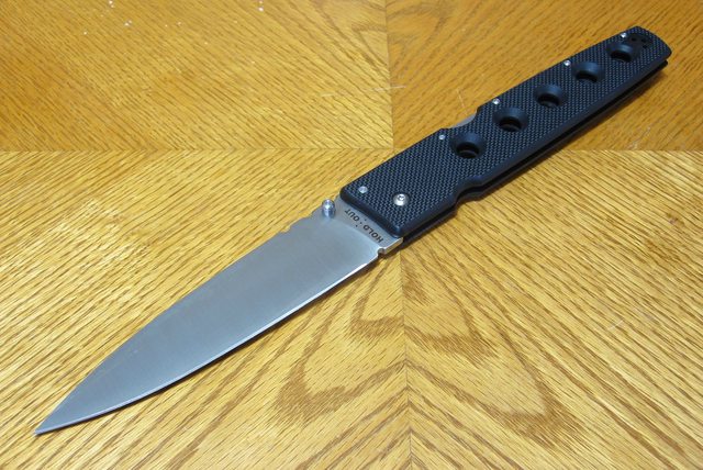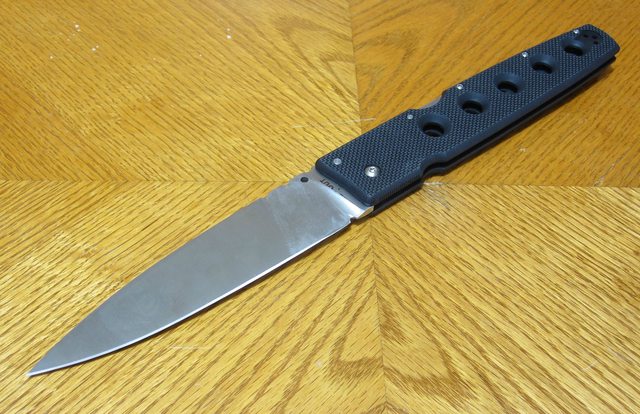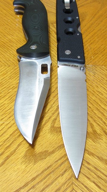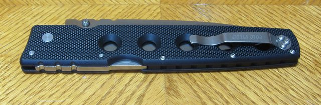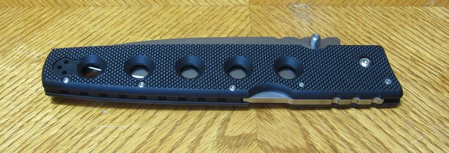 As a result this blade will excel at kitchen duty, which is half the reason I bought it. It's approaching the Spyderco Military in cutting ability, but the taper on the spine is a little less aggressive than Spyderco puts on their premium utility folder. Still, I find it incredible to think that any production company would put this profile on a blade of this size. Cold Steel may be many things, but they are definitely not out of touch with what makes a knife cut well.