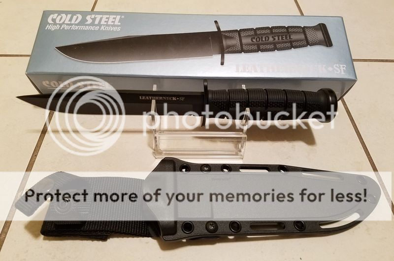 Up for sale, one new in box Cold Steel Leatherneck SF. Priced to sell at $50 plus shipping and in good condition. Shows normal wear marks from going in and out of sheath.