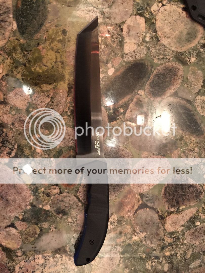 I have for sale an original Cold Steel Warcraft Tanto. I am the second owner. Original owner said he took a few chops and sent it away to Josh at Razor Edge Sharpening. I have not used the knife since I received it. It looks in excellent shape, some very minor hairline scratches on the blade and a couple minor scuffs on the G-10 (that would buff right out). Edge is in perfect condition!! A super nice slab of DLC coated 3V!! No box is included.
