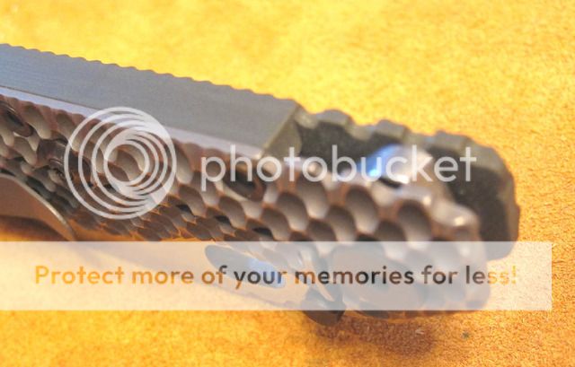 It is the SMF Gunner Grip in S35VN blade-steel and weighs 5.3 ounces on a postal scale. The Gunner Grip provides a gripping surface that cannot be matched by any other design...in my opinion. I am pricing this knife @ $500, which is ~10% below general pricing from the knife-shops.