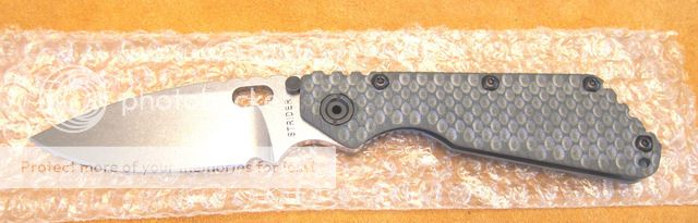 This beautiful Strider SMF is AS-NEW and it has been in my safe for 2-3 years. It is factory fresh and it has never been carried, or used or sharpened. I'm sort of a collector and it is "the heavy-duty" pick of my litter.