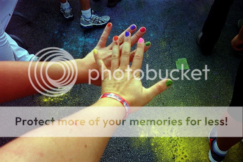 Well, I did the Cosmic Run Saturday night and it was an absolute blast!!:thumbup: Thought I was going to break my leg trying to run in the dark but thankfully I made it through. Some other runners were not so lucky though, as many ambulances got work in that evening at the raceAwesome upbeat music and the colored chalk covered me from head to toe by the end of the night. Then after, I felt so good for doing the run that today I did the only appropriate thing.......go to the Virginia State Fair and devour some deep fried oreos