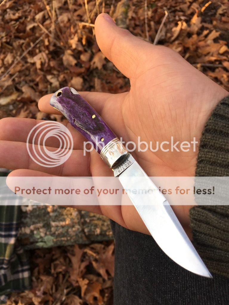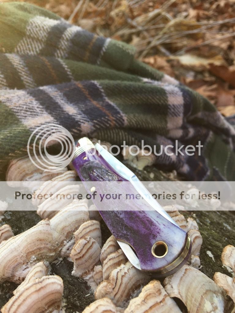 I was taking her to work and she asked for me to stop at the post office, she had a sly grin the whole time. She handed me the box and I quickly opened it knowing full well what was inside. The pure beauty of the natural materials molded into a working piece of art is truly stunning. This knife is as photogenic as they come! The way it almost seems to change colors in the daylight is spectacular. The walk and talk is perfect. This knife is steeped in love thanks to my girlfriend and I can't wait to have it with me in those big woods in search of a big ol' PA black bear. The old memories I have of those frozen mornings play back in my mind as I hold this knife in hand, the new memories I make with it have yet to be shared, but one thing is for sure, this knife has a special place in my collection and she has a special place in my heart.