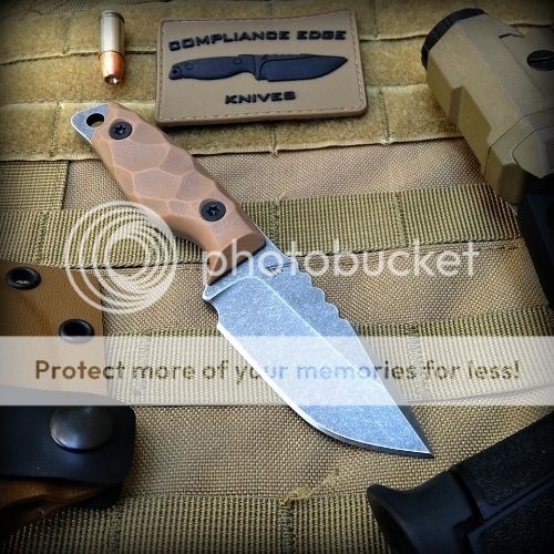 I have been making custom knives for the past three years now, and wanted to share my work with everyone. All of my knives are constructed from CPM-S35VN, and are heat treated in house to 59 HRC (each and every blade gets tested). I offer the options of custom markings (some examples can be seen in the images below), various colors, finishes, and belt fasteners. If you are interested in my work, you can head to my website and check things out over at www.complianceedgeknives.com. I am happy to answer any questions you might have, and I look forward to making knives for some of you good folks!