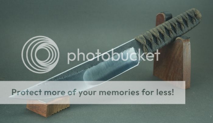 This one has a 7 3/16" blade(tip to wrap) of W2 and 4 5/8" handle. It's a robust blade at about 7/32" thick at the wrap.