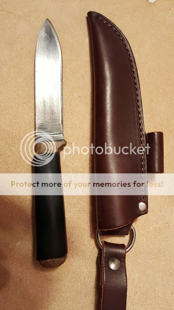 I replaced the original sheath with a leather drop sheath with a firesteel loop from Battle Horse Knives. It is an excellent sheath that fits the knife very well. If I remember correctly, the sheath cost about what I am selling the knife and sheath for, and the sheath is in nearly new condition.