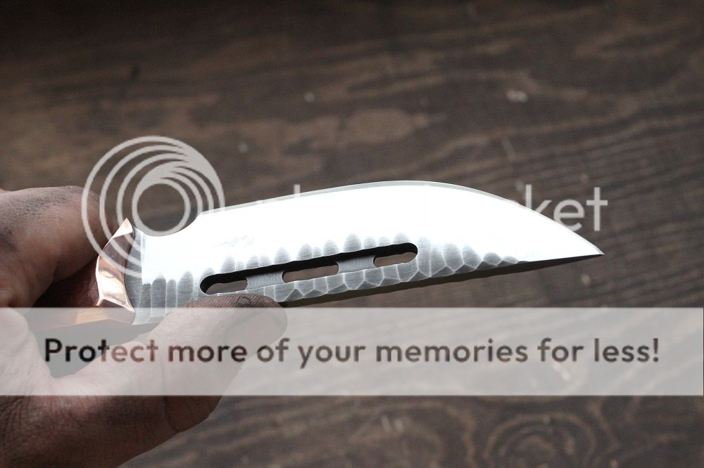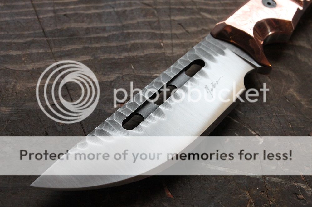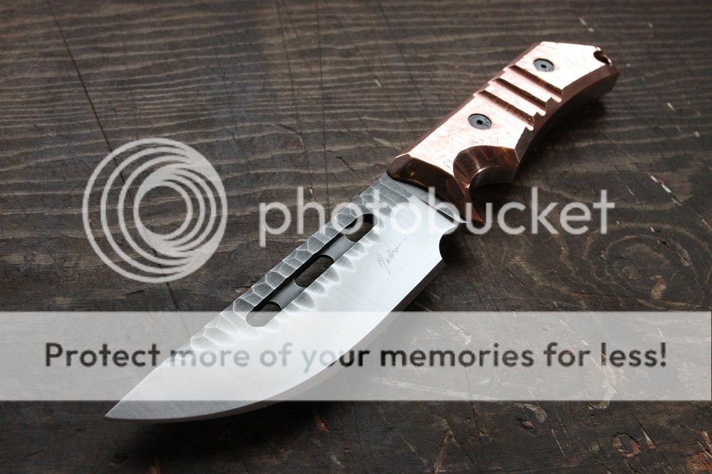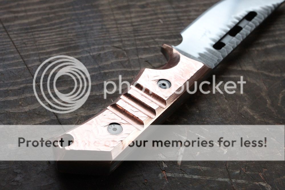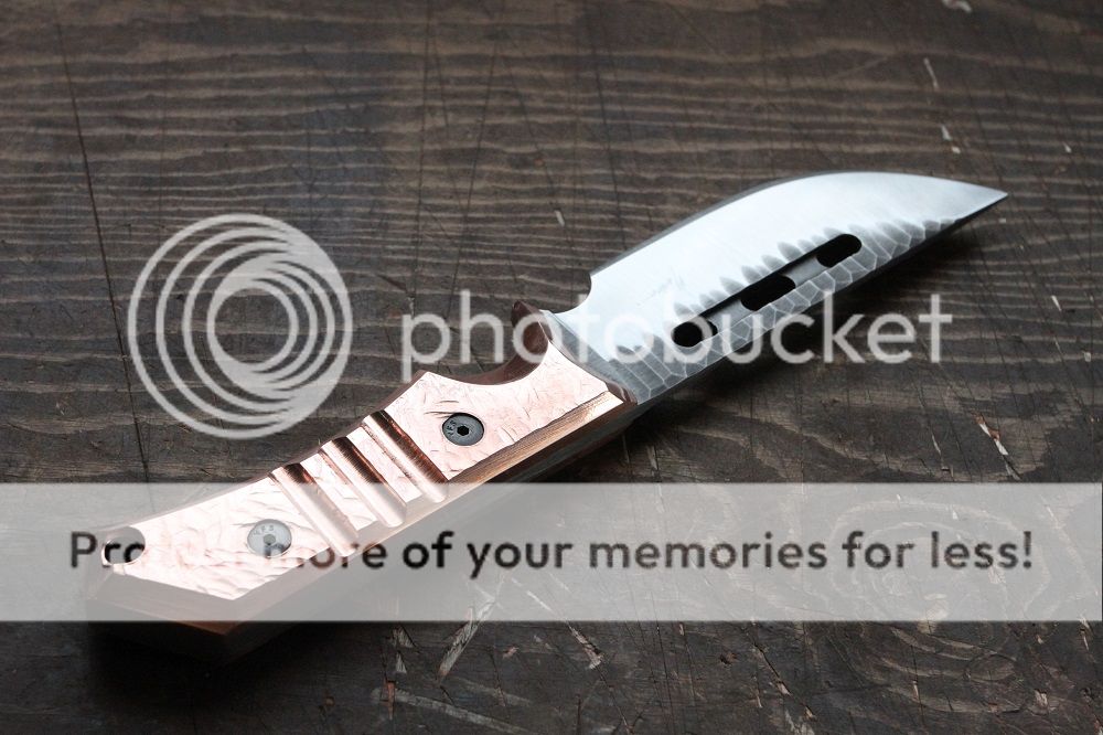 Scales are solid .25: copper hand hammered finish with removable hardware.