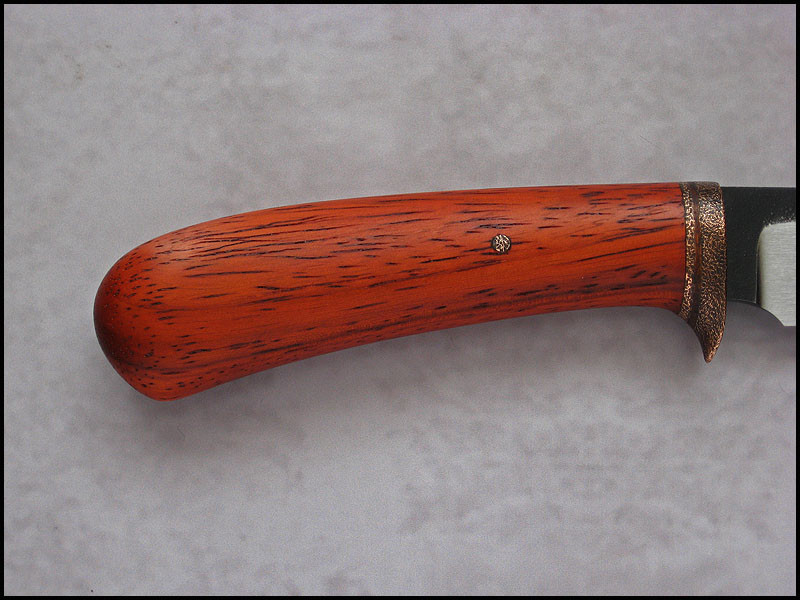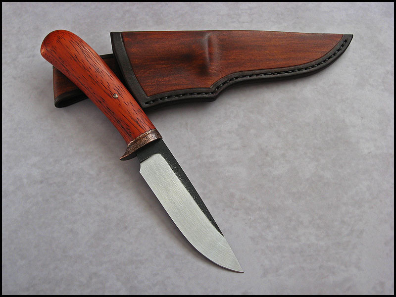 Another CopperField for sale. steel – high carbon NC6 / 3.7 mm [0.146"] length – 234 mm [9.212"] blade – 113 mm [4.449"] handle – Padouk, copper sheath – leather Price - $179 plus $11 for International Priority Mail SOLD
